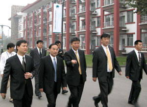 2003年1月9日,原四川省委常委、成都市委书记王荣轩和苏碧群、舒銮逸、苏培伟、孙家羱等省市领导在都江堰市各级领导的陪同下,视察成都东软信息技术学院。在“东软”项目建设工地上,领导们在兴致勃勃地听取学院张应辉院长的情况汇报 后,高度赞扬了东软扎根西部、服务西部、建全国一流IT学院、为西部地区信息化建设培养一流IT人才的精神和宏伟目标。 |