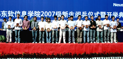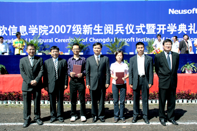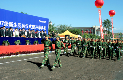 9月14日上午,我院2007级新生军训阅兵仪式暨开学典礼在学院运动场隆重举行。学院党委书记、院长张应辉,副院长胡景德、汪琛、黎明,党委副书记张宪民,军训领导小组及军训部队首长李彪等一同出席。典礼由党委副书记张宪民主持。学院各部门负责人、2007级全体新生以及军训部队全体教官参加了阅兵仪式。 号角吹连营 沙场秋点兵 阅兵式在雄壮嘹亮的国歌声中拉开了序幕。学院院长张应辉在军训部队首长李彪的陪同下,检阅了精神饱满的新生军训方队。“同志们好!” “首长好——”,“同志们辛苦了!” “为人民服务——”同学们身着统一军装,一个个精神抖擞,神采飞扬,铿锵有力的口号声响彻学院上空。 “标兵就位!”一声号令,振奋人心的分列式正式开始。运动场上响起激昂的《中国人民解放军军歌》。持枪方队首先正步通过主席台。紧接着,其他方队依次走过主席台。英姿飒爽的同学们迈着矫健的步伐,踢着整齐的正步,高喊军训口号,雄赳赳、气昂昂地依次通过主席台,接受学院领导和部队首长的检阅,充分展现了此次军事训练的成果和新时代大学生奋发向上的精神面貌。 分列式结束之后,同学们还进行了擒敌术、格斗等军事科目的汇报表演,赢得了现场热烈的喝彩。表演结束后,汪琛副院长宣布了军训先进团体和优秀个人名单,军训一中队一区队等4个区队获得“优秀区队”称号,李迅等65名同学获得“优秀学员”称号。 金秋结硕果 寄语暖人心 军训阅兵结束后,还进行了2006-2007学年奖学金颁奖仪式。学院副院长胡景德宣布了年度“华天奖学金”、“企业奖学金”获奖名单。06日语强化3班的叶冉琴和06数据库2班的刘端获得“华天奖学金”;刘暻蓓、邱兆艳、江梅等72名同学分别获得“企业奖学金”一、二、三等奖。 华天奖学金获得者叶冉琴同学在发言中说,大浪淘沙,方显真金本色,大学几年里,我们一定要努力巩固知识结构,专研理论内涵,丰富实践经验;要充分珍惜时间,为以后更为激烈的竞争乘风破浪,展现我们的风采。 教师代表、新生代表也分别在仪式上发言。 学院党委书记、院长张应辉最后发表了讲话。他说,通过刚才的军训汇报表演,同学们整齐的军姿和飒爽的面孔给留下了深刻的印象。半个多月的军训生活使你们进步了很多,你们的精神面貌发生了很大的变化,看到你们一个个不怕苦、不怕累的精神,我也为你们感到骄傲。同时也希望你们通过这次的军事训练,能把你们从军训中学到的吃苦耐劳、顽强拼搏的精神和品质用于你们今后的大学生活中。他要求大家明确学习目标,注重自身培养,成为一名合格的大学生;把学习专业知识与提高综合素质统一起来,成为一个复合型人才;注意处理好知识继承与创新的关系,成为适应知识经济时代的创新型人才,并且“敢于志存高远,善于实事求是。”用生命中最宝贵的青春时光,把握好时间,在东软学会认知、学会做事、学会为人。将来用合格的答卷,回报学院,回报老师,回报滋养我们的父母和亲人。 | ||||||||||||||