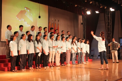 为庆祝中国共产党成立90周年,在党的生日来临之际,我院数字艺术系师生特地准备了一份丰厚的生日礼物。6月13日晚7点,在A8二楼活动中心举行了“红歌代代唱”歌咏比赛,来自数字艺术系2010级15个支部参加了比赛。