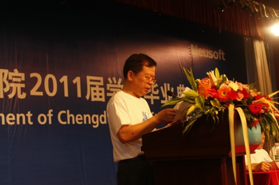 计科系教师罗频捷代表学院全体老师向同学们表示热烈的祝贺。衷心祝贺同学们圆满完成学业,揭开自己人生道路上崭新的一页。他说“大学的日子渐渐成为过去,现在正经历的也即将成为记忆。亲爱的同学们,挺直你们的脊梁,挺起你们的胸膛,坚强而勇敢地到社会中去拼搏吧,那里有你们的新天地!”