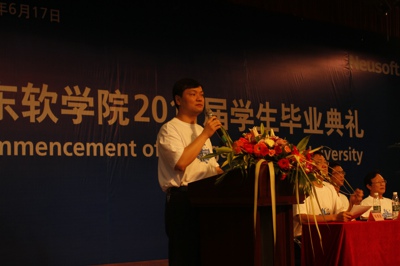 随后,08级影视动画专业的段昊东同学作为学生代表发言,他代表全体毕业生向三年来辛勤工作、无私奉献的领导和全体老师们表示深深的感谢和崇高的敬意,向2011届全体同学表示热烈的祝贺。他说“过了今天,我们的大学生活将划上一个圆满的句号,我们将告别朝夕相处的同学,告别循循善诱的老师,告别美丽如画的校园,踏上人生新的征程。大学时光只是人生路途中的一个小小的驿站,毕业并不代表结束,而是意味着开始,不是庆祝完成,而是宣布进步。生活总会有压力,现实总要去面对,我们要到生活的地图上去寻找自己的新坐标,不管走到哪里,不管在什么岗位工作,都会继续填好人生的履历表,为母校争光添彩。” 段昊东同学饱含深情的发言引起了在场毕业生的共鸣。