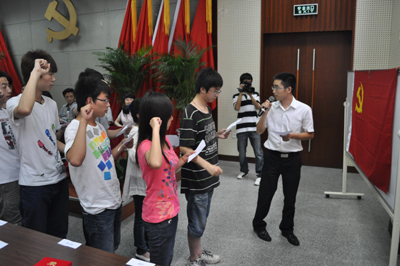 组织部副部长屈进带领新党员宣誓