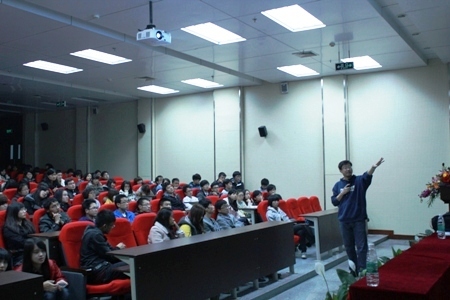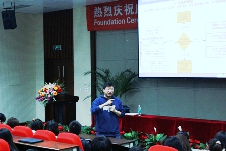 互动结束后,周先生以事例做依托,为同学们讲述了产品设计与产品创新的方法论。周宏桥先生有条不紊、逻辑严谨的话语,将平时枯燥无味的理论变得有血有肉,充满活力。他用幽默、精彩的措词将现场的气氛一步步推向高潮。周宏桥先生的精彩演讲,让学生们更深切地认识到未来IT的发展趋势。