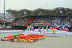 为了圆满完成演出任务,自5月起,我院800名学子就在相关老师的指导下展开了紧锣密鼓的排练,不惧烈日,不畏风雨。在历时两个月的演练后,我院学子终于踏上了开幕式的舞台。800位少年一袭红衣,意气风发,体现出东软学院学子积极向上的精神风貌,更将成都市自灾后重建以来的蓬勃朝气和运动会拼搏与坚持的精神完美展现。