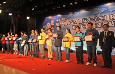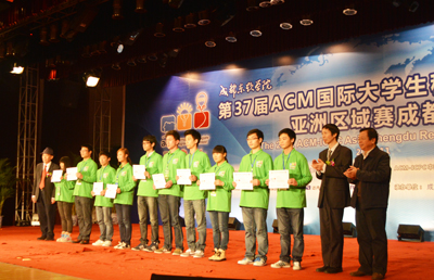 11月11日,第37届ACM国际大学生程序设计竞赛亚洲区域赛闭幕式暨颁奖典礼在学院落下帷幕。出席此次闭幕式暨颁奖典礼的嘉宾有 ACM国际大学生程序设计竞赛亚洲区组委会主席黄金雄教授、ACM中国区指导委员会秘书长周维民教授、IBM中国区大学关系经理周恩昌先生、达内科技人才服务中心直辖区副总经理李旻先生。学院副院长曹云凤教授、副院长张辉教授、财务总监陈云华、院长助理兼教务部部长康桂花、计科系主任兼党总支书记杨瑞良、计科系常务副主任巫家敏和计科系党总支副书记贾骐参加了闭幕式。