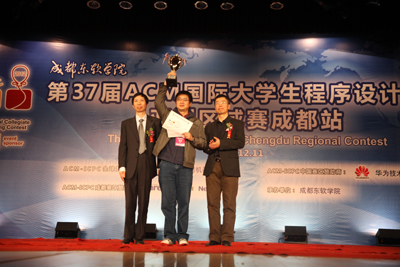 随后,主持人阿丘以他一贯风趣幽默的主持风格宣布了获奖名单。其中,获得铜牌的学校和代表队共45支队伍,包括合肥工业大学1队、国防科技大学1队、重庆大学1队等,学院计科系常务副主任巫家敏和党总支副书记贾琪为选手颁发了获奖证书;获得银牌的学校和代表队共30支队伍,包括同济大学1队、北京大学3队、浙江理工大学1队等,院长助理兼教务部部长康桂花和计科系主任兼党总支书记杨瑞良为选手颁发获奖证书;获得金牌的学校和代表队共15支队伍,包括华南理工大学1队、电子科技大学2队、北京大学1队等,中国区指导委员会秘书长周维民教授、IBM中国区大学关系经理周恩昌先生、学院副院长曹云凤教授、学院副院长张辉教授和达内科技人才服务中心直辖区副总经理李旻为选手颁发了获奖证书。此外,获得拼搏奖的队伍共2支队伍,分别是宁波大学1队,西南财大1队;获得最快解题奖的学校和代表队共8支队伍,包括电子科技大学6队、电子科技大学2队、北京大学1队等,均由大赛的裁判长—学院ACM总教练余新桥博士和大赛命题组组长、复旦大学孙未未博士为选手颁发证书。
