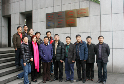 学院领导与来访嘉宾一行在学院“成都市军队转业干部培训基地”挂牌处合影留念