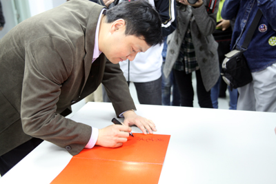 学院党委书记、院长张应辉教授在参观了此次作品展后亲自题词