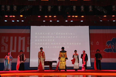 伴随着动感的节奏,一场独具创意的荧光舞拉开了晚会的帷幕。方言版诗歌朗诵《再别了,康桥》,展示了老师们的独特风采;《歌舞青春》、《舞蹈串烧》、《Shyboy》等节目则彰显了新一代大学生昂扬向上的青春活力;老师们自编自导的舞台剧《为龙》更是为观众们展现了中华儿女不屈不挠、顽强拼搏的民族精神;而舞蹈《草裙舞》更是将晚会推向了最高潮。