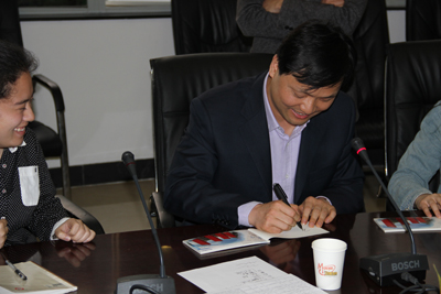 张院长在学院的纪念明信片上签名