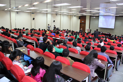 在讲座中,徐教授风趣幽默的语言形式,用提问讨论的方式与台下师生互动交流,不时赢来全体师生的热烈掌声。