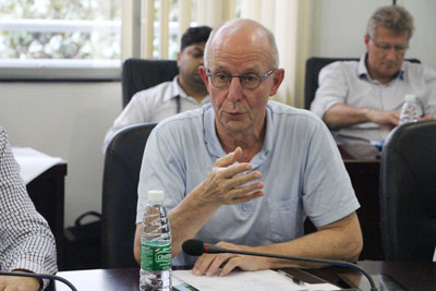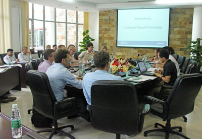 荷兰Nyenrode商务大学MBA部部长Prof.Marcel Creems博士向与会人员介绍了本次MBA访问团来访学院的目的和意义,Prof.Marcel Creems博士指出,此次来访有利于促进双方合作和交流,希望今后能深入了解和合作。随后,他介绍了MBA代表团成员,他们分别来自于飞利浦(Philips)、惠普(HP)、荷兰皇家帝斯曼集团(DSM)、荷兰皇家KPN电信集团、荷兰福克公司(Fokker)、Vookus公司、Vitrum公司等。随后,双方就IT教育与企业合作的相关问题进行了探讨。