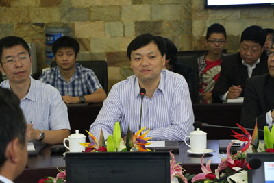 学院领导与来访客人在学院第一会议室举行了座谈。张院长代表学院对来访客人的到来表示了热烈欢迎,并向客人介绍了学院办学理念、办学定位、办学特色、教育教学改革、国家化交流和产学合作等诸多方面内容,永田常务对学院的办学理念和校园氛围表示认同与赞赏。会上,永田常务首先就东芝解决方案公司的相关情况做了简要介绍,并希望今后能够进一步加强交流合作。随后,学院师生就相关行业问题与永田常务一行做了深入探讨和交流。会后,张院长代表学院与永田常务互赠了纪念礼物。