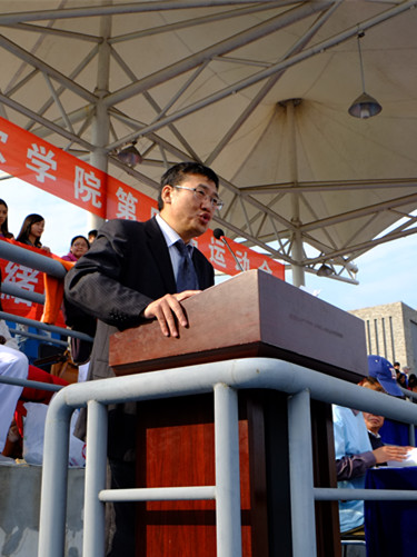 学院副院长曹云凤教授致闭幕词。曹云凤副院长首先代表代表学院领导和全体教职员工向老师和同学们取得的一个个骄人战绩表示热烈祝贺,他表示,举办此次运动会的目的就是为了强身健体,倡导积极参与和敢于竞争的意识,增强广大师生员工的集体荣誉感和凝聚力,促进学院的精神文明建设。同时,曹院长希望全体教职工和同学都能将运动会中展现的团结协作、拼搏奋进的精神带到今后的工作和学习中去,并向为这次运动会付出辛勤工作的老师们和同学们表示崇高的敬意和衷心的感谢。