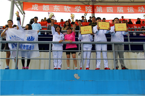 闭幕式上,此次运动会总裁判长古彬老师宣布了竞赛团体成绩,获得此次运动会学生代表队团体前六名的分别是:信息管理与信息系统团队、外语系团队、财务管理与会计团队、网络工程1队、计算机科学与技术1队与艺术设计团队;获得运动会教职工代表队团体奖前两名的分别是:行政部分工会,基础部分工会,第三名由数艺系分工会和计科系分工会并列获得。随后,学院院长助理、教务部部长康桂花宣布体育道德风尚奖评比结果,应用外语系团队,艺术设计团队,财务管理与会计团队,软件工程3队与计算机科学与技术2队最终获得此项殊荣。