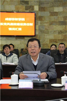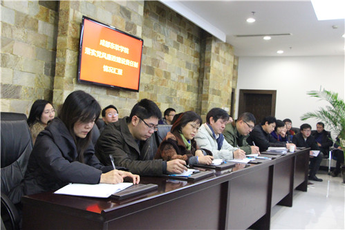 曹云凤副院长、刘宏副院长、张辉副院长也分别从各自主管的部门展开了自查报告。四川省教育厅督导专员、学院数艺系党支部书记钟沛然针对我院党风廉政建设工作作了补充发言。
