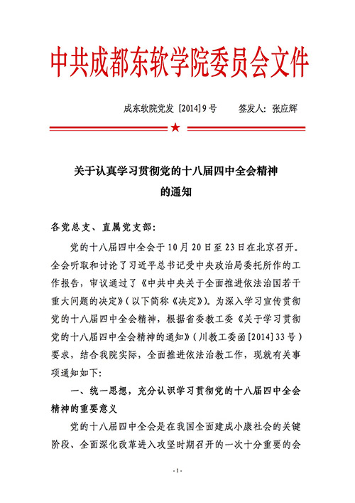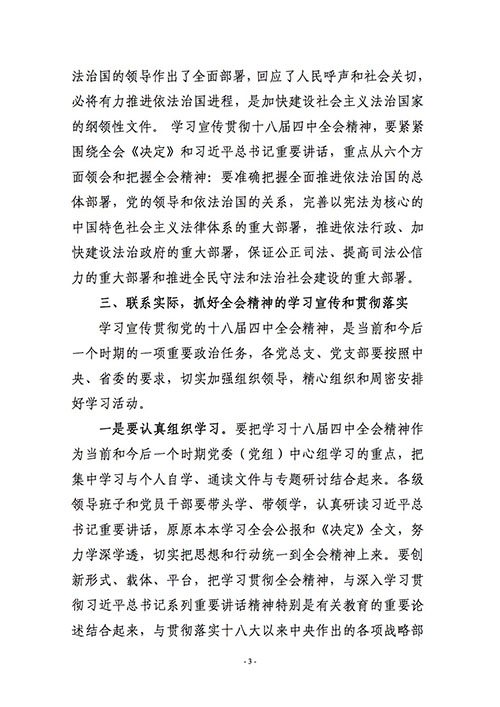 关于认真学习贯彻党的十八届四中全会精神的通知