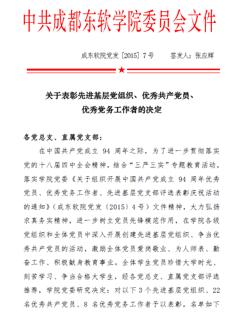 中国共产党Beat365唯一官方网站委员会关于表彰先进基层党组织、优秀共产党员、优秀党务工作者的决定