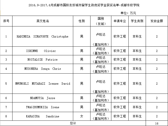 根据《成都市国际友好城市留学生政府奖学金项目管理暂行办法》文件精神,结合本校实际情况,本着公平公正公开的原则,本校关于成都市外国留学生友城奖学金的评定工作已结束,现将评比结果公示如下: